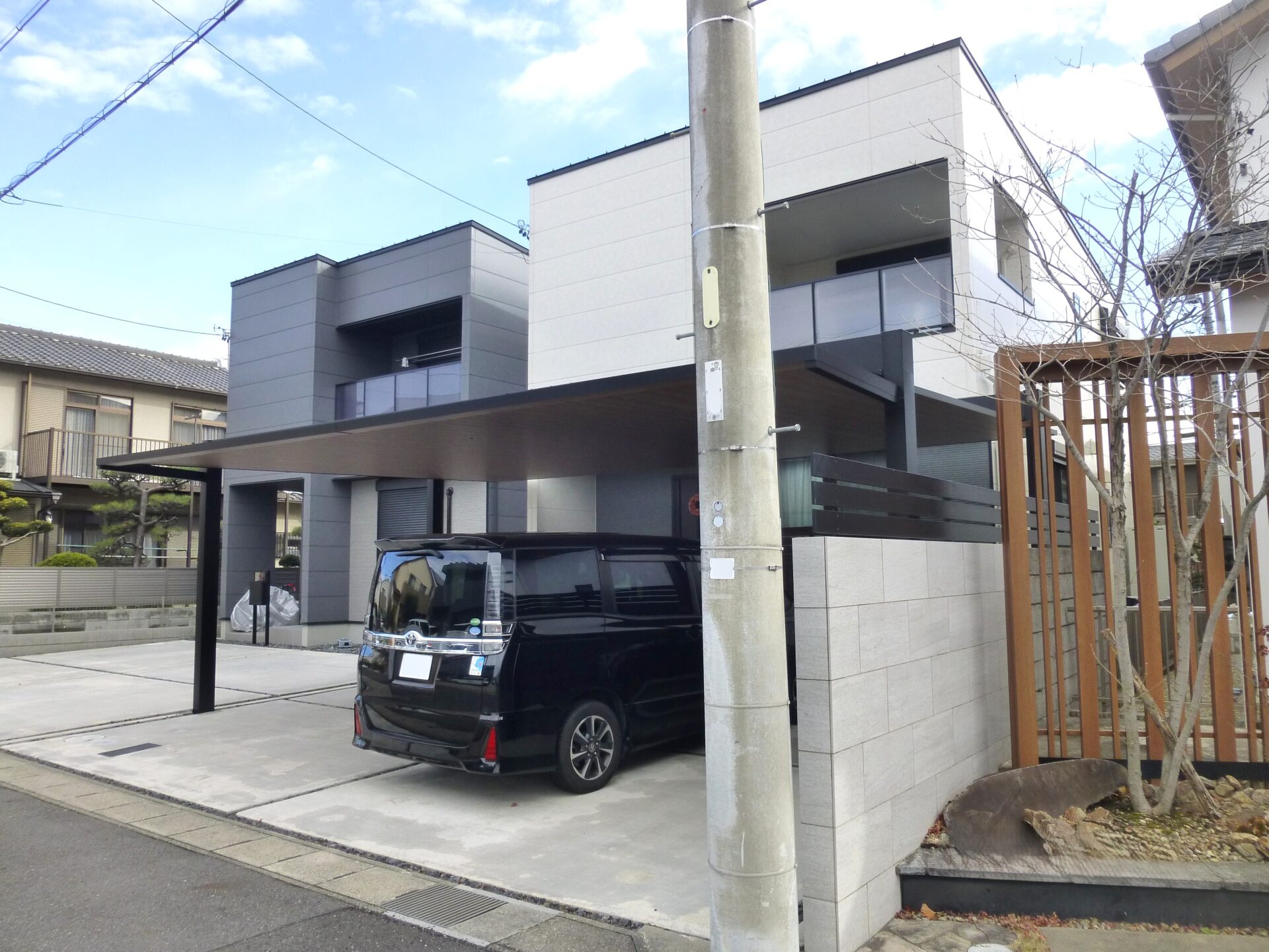 愛知県小牧市にて、新築戸建て住宅のカーポートとフェンスの単品工事をご依頼いただきました。今回は外構全体ではなく、必要な部分に絞って計画することで、建物の魅力をより引き立てるプランとしています。